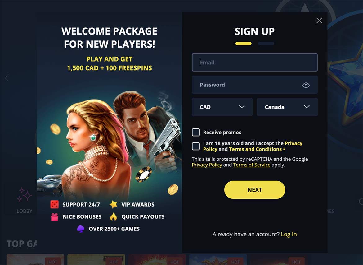 - Ensure you’re 18 years old or above (Alberta’s legal age) and accept the terms and conditions. Several online casinos allow you to subscribe to their promotional updates.